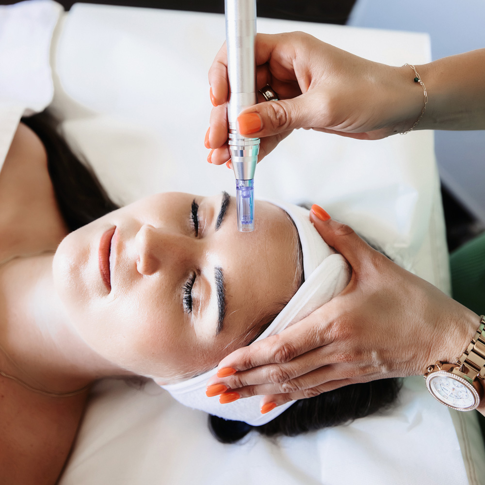 Microneedling ist eine Behandlung, bei der die Haut zur Regeneration angeregt wird, in dem mikroskopisch kleine Öffnungen geschaffen und dabei gleichzeitig Wirkstoffe in die Haut eingeschleust werden.